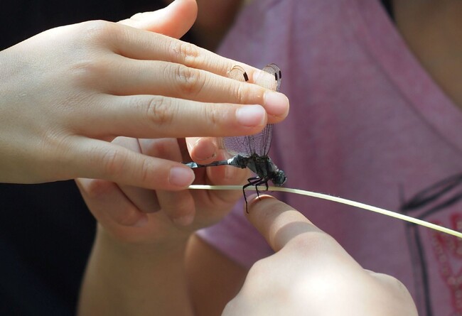 当日は、メダカやエビなどの庭園内に生息する生きもののご紹介と、シオカラトンボやアジアイトトンボの幼虫とアメンボの観察を行う予定です。