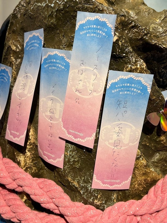 「もういい歳なんだから」「そんな派手な髪色じゃモテないよ?」など、他人に言われてモヤっとした気持ちになる言葉やイラストを展示。「たしかにこれは言われたくない」と、改めて自分らしさを阻む壁に気づいたという声も。封印の岩では、参加者が実際に言われてモヤっとした言葉を“御札”に書いて封印。「短パン姿見たくない」「前の方が良かった。なんか痛い(笑)」などリアルな声が集まりました。