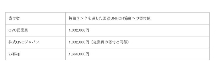 また、お客様にも支援を呼び掛けたところ、公式サイト「QVC.jp」に掲載した国連UNHCR協会ウクライナ緊急支援ページへのリンクを通じ、合計1,666,000円が国連UNHCR協会へ寄付されました。