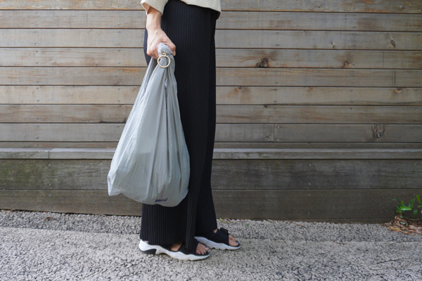 中のバッグは使いやすいレジ袋型。たたみじわも気にならないくしゅくしゅとした柔らかな素材感です。