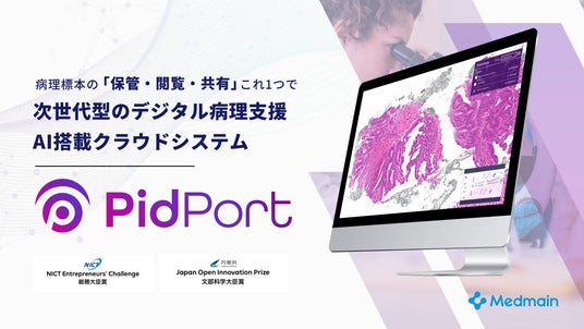 メドメインは、病理標本の保管・閲覧・共有を一元化する、次世代型のデジタル病理支援AI搭載クラウドシステム「PidPort」の開発・提供を行う研究開発型スタートアップです。「PidPort」は病理医不足という医療現場の課題に対し、クラウドとAI技術で診断支援と業務効率化に貢献しています。すでに多くの医療施設で利用されており、特に日本国内の医学部設置大学では半数以上で導入されています。