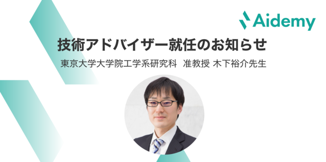 AIを中心としたDX人材の育成から実運用まで一気通貫で支援する株式会社アイデミー(本社:東京都千代田区、代表取締役執行役員社長CEO 石川聡彦、以下「アイデミー」)は、技術アドバイザーに東京大学大学院工学系研究科 准教授 木下裕介先生が就任したことをお知らせいたします。
