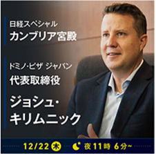 株式会社ドミノ・ピザ ジャパン(代表取締役:ジョシュア・キリムニック、CEO:マーティン・スティーンクス、本社:東京都品川区、以下:ドミノ・ピザ)が展開する国内No.1シェアを誇る宅配ピザチェーン ドミノ・ピザが、2022年12月22日(木)夜11:06から放送予定の、テレビ東京系列「日経スペシャル カンブリア宮殿」にて紹介されます。