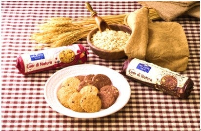 商品特徴:全粒粉とオーツ麦フレークを使用したザクザクとした食感のビスケット。生地にフルーツピューレを練り込み、フルーティーな味わいに仕上げました。