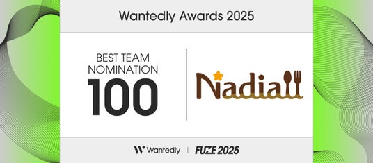 Nadia株式会社(東京都港区/代表取締役社長 葛城嘉紀)にて運営している料理メディア「Nadia(ナディア)」(以下「Nadia」)(URL:https://oceans-nadia.com/)は、ウォンテッドリー株式会社の『Wantedly Awards 2025』において、40,000社以上のWantedly登録企業の中から「BEST TEAM NOMINATION 100(TEAM OF THE YEAR BEST 100)」にノミネートされたことをお知らせします。