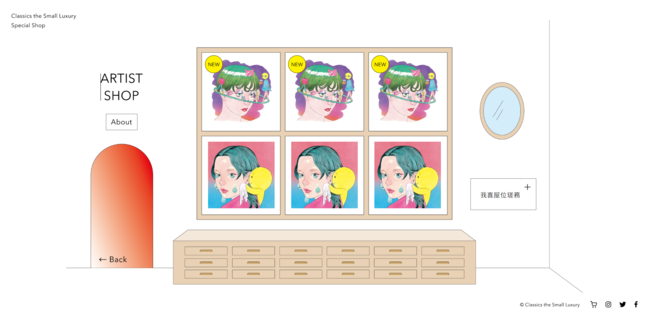 CLASSICS the Small Luxury Special Shopでは、我喜屋 位瑳務氏の商品を展開した「ARTIST SHOP」をはじめ、今の時期にお勧めのホリデーギフトを揃えた「GIFT SHOP」や、VRショップなどをお楽しみいただけます。