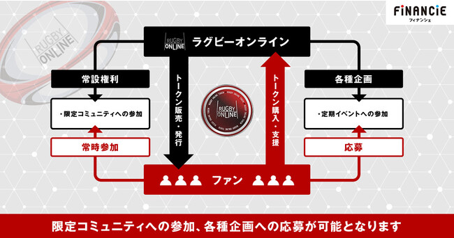 今回フィナンシェは、ラグビーオンラインがトークン発行を通じて、既存ファンだけでなく幅広い層の方々と双方向に意見を取り交わすことのできるコミュニティをFiNANCiE上で形成し、ファンと一体となってクラブの成長を目指していくという新たなチャレンジを支援いたします。