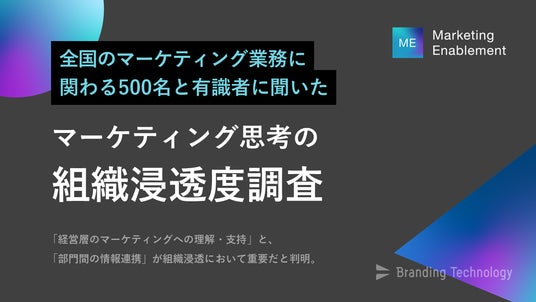 ブランディングテクノロジー株式会社(代表取締役社長:木村 裕紀、本社:東京都渋谷区、証券コード7067、以下当社)は、マーケティングの業務に関わる500名を対象に「マーケティング思考の組織浸透度」調査を実施しました。本調査の結果、『経営層のマーケティングへの理解・支持』と『部門間の情報連携』が、マーケティング思考の組織浸透において決定的な役割を果たしていることが判明しました。
