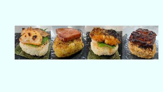 左から【炭火焼きハラスにぎり】【チーズ炭火焼きドライカレーにぎり】【炭火焼きサバにぎり】【炭火焼きウナにぎり】