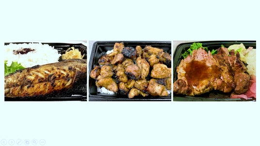 左から【炭火焼きサバ弁当】【鶏炭火焼き弁当】【炭火焼き豚ロース弁当】