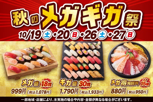 メガ盛!ギガ盛!!食べ応え抜群!食欲の秋にふさわしい『秋のメガギガ祭』♪週末にぜひ、小僧寿しのお寿司をご賞味ください!