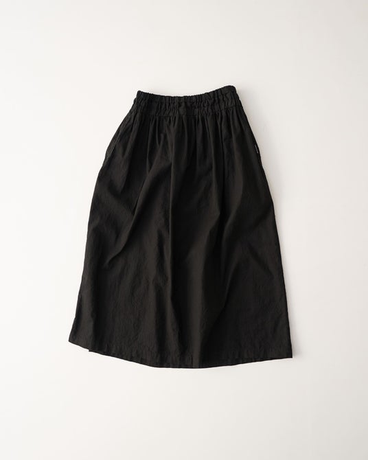 すっきりとしたシルエットが上品なギャザースカート。ウエストは幅を広めにし、おなか周りをすっきりと見せてくれます。シンプルなデザインなので合わせるトップスも選ばず、さまざまな着こなしをお楽しみ頂けます。同シリーズのボレロブラウスとのセットアップの着こなしもおすすめです。