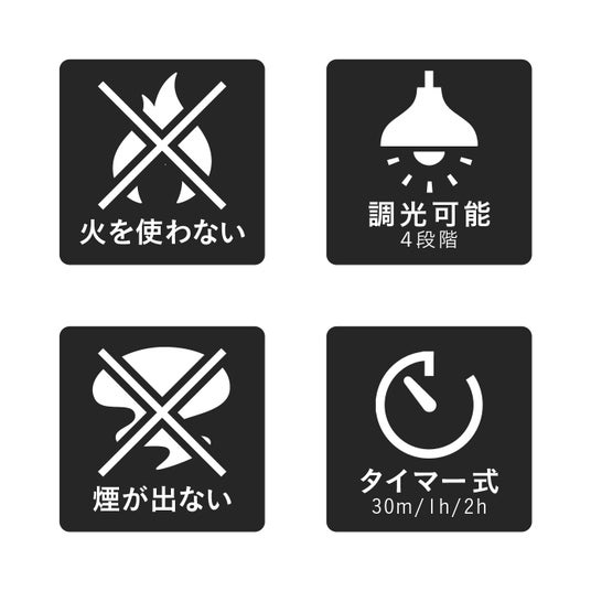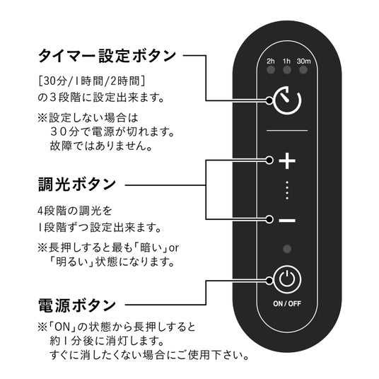 機能/調光(4段階)、タイマー(30分/1時間/2時間)