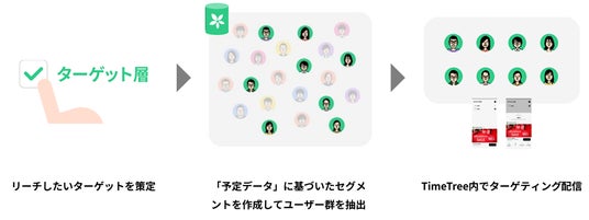 「TimeTree Ads」はユーザーの未来予定にターゲティングできる特徴を有し、日本人の20~40代のうち約3分の1が利用する国内トップクラスのユーザーベースを持つアプリ「TimeTree」上で、ユーザー個人にパーソナライズされた広告が配信されます。