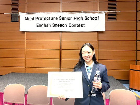 2024年11月2日(土)、国際高等学校2年、大島千結さんが名瀬地区代表として第31回愛知県高等学校英語スピーチコンテストの県大会へ出場し、第1位を受賞しました。