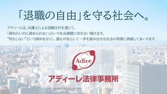 アディーレ法律事務所(東京都豊島区、代表弁護士・鈴木淳巳、以下「アディーレ」)は、弁護士としての立場から、退職代行の正しい理解を広げ、安心して利用できる環境づくりに取り組む方針を明らかにします。