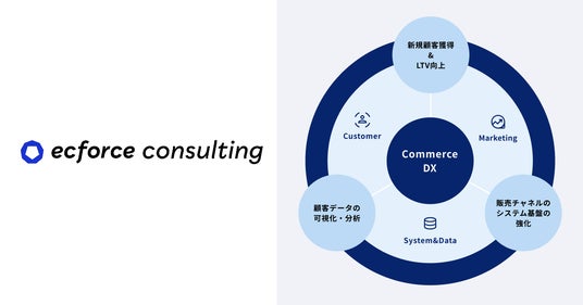 コマースDXを実現する統合コマースプラットフォーム「ecforce」を提供する株式会社SUPER STUDIO(所在地:東京都目黒区、代表者:代表取締役 CEO 林 紘祐、以下:SUPER STUDIO)は、主にエンタープライズ企業の事業者に向け、デジタルチャネルを中心とした販売からデータ活用までを一貫してサポートする伴走型の事業支援サービス「ecforce consulting」の提供を開始します。ビジネスのフェーズに合わせた幅広い領域で伴走支援することで“成果につながるDX”を実現し、コマース事業者のビジネス成長に寄与してまいります。
