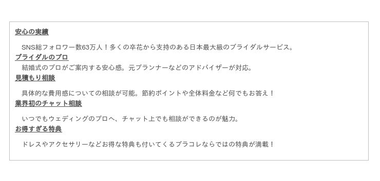 チャットひとつで全ての悩みが解決できる「PLACOLE WEDDING」には、ご利用者様の50%が他媒体を利用せずPLACOLE WEDDINGのみ利用、また、NPS調査でも70%以上のユーザーが友人に勧めたいと回答いただきました。運営側が驚くほど、毎日たくさんの"ありがとう"の声を頂けるサービスになりました。