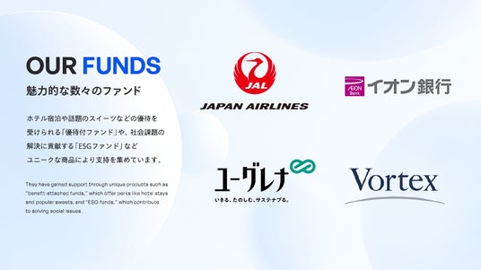 また、ホテル宿泊や話題のスイーツ・定期預金の特別金利などの優待を受けられる「優待付ファンド」や、社会課題の解決に貢献する「ESGファンド」など、ユニークな商品の提供により、多くの支持を集めています。