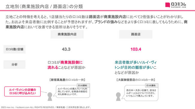 1.「商業施設内店」と「路面店」で口コミ数の増減が異なる