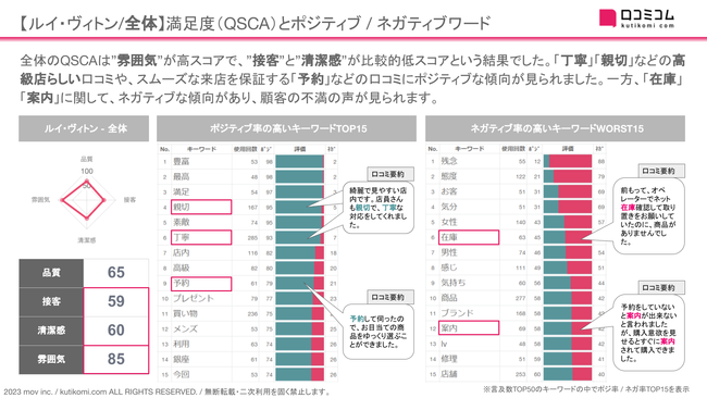 今回は、このAI解析を用いて【ルイ・ヴィトン】のQSCA・ポジ / ネガキーワードを確認しました。