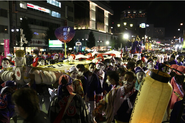 メイン行事の総おどりには、福島の「わらじまつり」で練り歩く大わらじが登場しました。