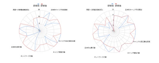 ※キャリア自律に関わる項目を設定し、前後の変化を計測します