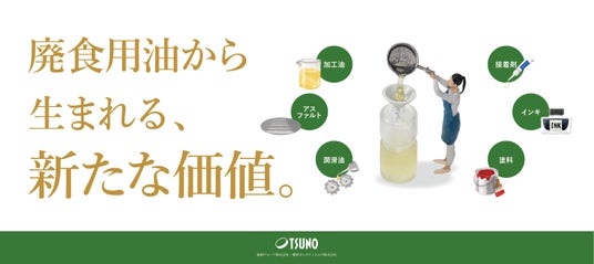築野グループは、1960年にオレオケミカル事業を開始。こめ油や各種植物油の精製で生まれる副生成物を原料に、脂肪酸や脂肪酸誘導体を製造しています。1990年代からは、この技術を活かし、使用済み食用油のリサイクルにも展開。長年にわたる技術開発により、原料から誘導体まで一貫して生産・開発できる体制を整え、技術革新を重ねてきました。その成果は、樹脂、インキ、加工油、可塑剤、接着剤、石鹸、アスファルトなど、幅広い分野で石油由来原料の代替として活用されています。オレオケミカル事業:https://www.tsuno.co.jp/oleo-chemicals