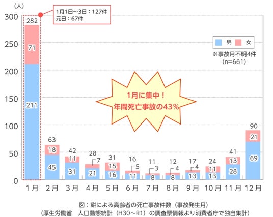 【図1】餅による高齢者の死亡事故件数(事故発生月)(出典:政府広報オンライン https://www.gov-online.go.jp/article/202212/entry-9901.html)