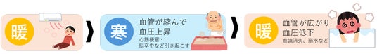 重篤になると、心筋梗塞や脳卒中などの発症リスクも高まるとされており、失神などの意識障害が起こることで、結果的に浴槽での溺水などにつながる恐れがあります。