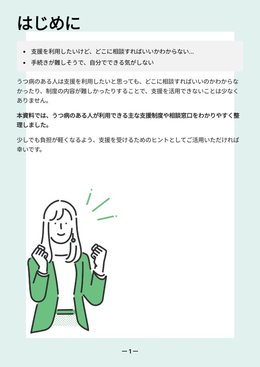 そのため、ぜひ本資料を活用して「利用できる支援」や「申請方法」を知り、うつ病に関する不安や悩みを解消しましょう。