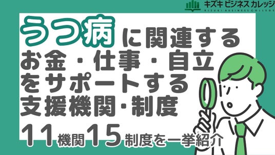 また、キズキビジネスカレッジ(KBC)では、うつ病のある人が利用できる支援制度や支援機関、あわせて、うつ病を経験した人の体験談やご家族がうつ病になったときの支援の方法を解説するコラムを公開しています。