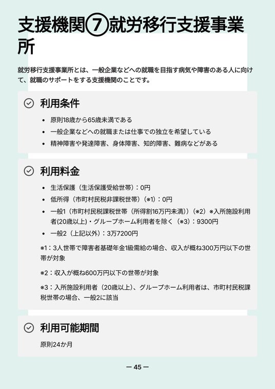加えて、各支援機関・支援制度の概要や利用条件、利用方法など、支援を活用するための情報を厳選してまとめています。