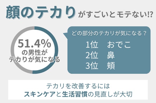調査の結果、51.4%の男性が顔のテカリが気になっていることが明らかになりました。