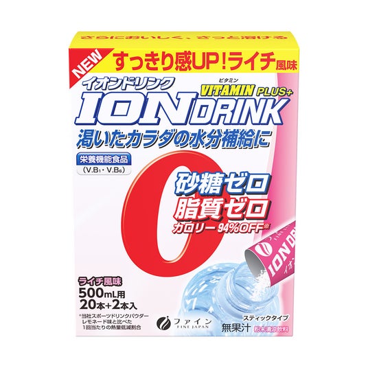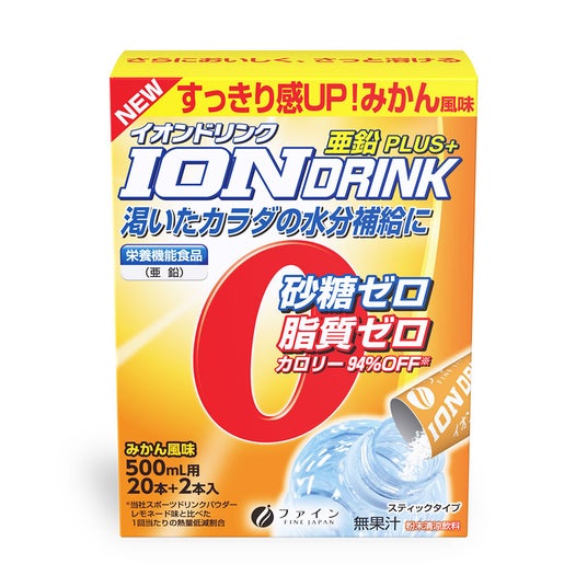 ファインの「イオンドリンク」はお水に溶かすだけの粉末タイプ※の“砂糖0”でヘルシー設計です。スポーツ時・お風呂上り・起床後等、渇いたカラダの水分補給、汗で失った電解質の補給にご利用ください。