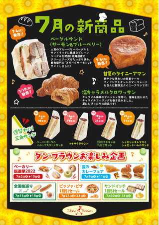 焼きたてパンの店「ダン・ブラウン」から、夏の暑い時期でもさっぱりと食べられるベーグルサンドやスイートパンを新たに発売します。是非ご賞味ください。