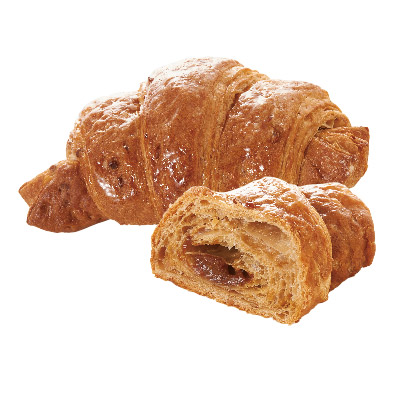 キャラメル風味のデニッシュ生地に、ザラメ入りのザクザクしたビスケット生地を重ねて、塩味を効かせたキャラメルクリームを巻き込んだスイートクロワッサンです。