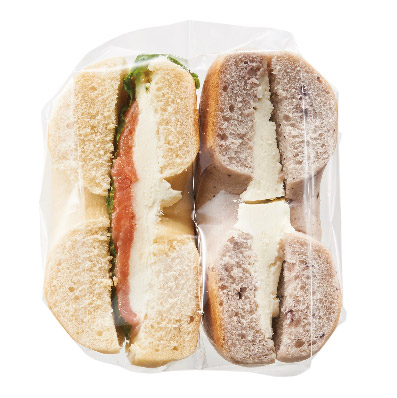ダン・ブラウンの美味しいベーグルに、人気具材の「スモークサーモン」と「クリームチーズ」を挟みました。プレーンベーグルにはスモークサーモンを、ブルーベリーベーグルにはクリームチーズを挟んだ、もっちり食感で食べ応えのあるベーグルサンドです。