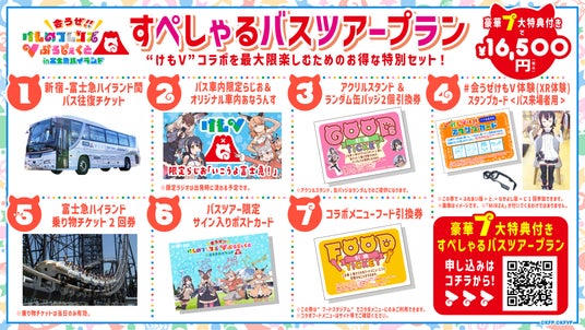 XRグラスで「けもV」メンバーとコミュニケーションが取れる、テーマパーク史上初の「XR体験」をはじめ豪華特典がついた新宿-富士急ハイランド間のバスツアープランは、3月28日(金)正午に発売。
