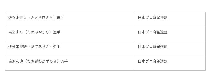 株式会社コナミアミューズメントは、プロ麻雀リーグ「Mリーグ」のチーム「KONAMI 麻雀格闘倶楽部」にて、今秋開催予定の「Mリーグ2023-24」に向け、以下4 名の所属選手との契約を更新したことをお知らせします。