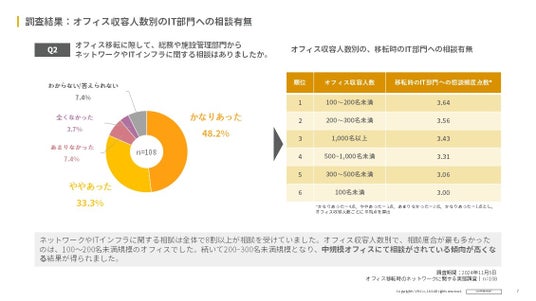 オフィス移転計画で、7割以上がネットワーク環境を十分考慮したと回答する一方で、移転後には約半数で問題が生じていることが明らかになりました。