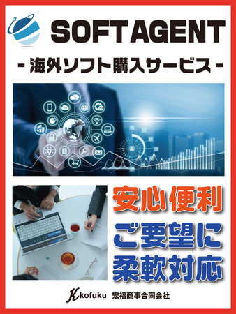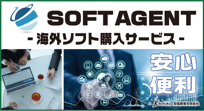 「ソフトエージェント」は、宏福商事合同会社が提供する法人向け海外ソフトの購入代行サービスです。