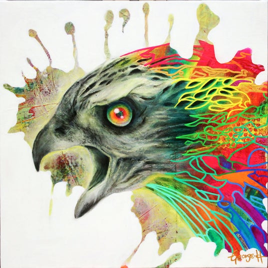 ジョージハヤシ / GEORGE HAYASHI1978年東京生まれ、幼少期から独学で絵を描き始める。「NOMAD HEART/自由な心臓」をスピリットに、自然が持つ本能やエネルギー、野生動物の強さや生き方に影響され表現している。2010年から活動拠点を上海に置き、中国国内外の画廊や美術館で展覧会を開催。飲料水ブランド「チェリオ」、高級美容機器ブランド「ARTISTIC&CO」など企業コラボレーション多数。在上海日本国総領事館や在台湾日本領事公邸等に作品が収蔵され、マカオのカジノホテルや「SPEAK LOW」(中国・上海)スボーツブランド「NIKE」SG CLUB、ゑすじ郎、SG TAVERN(以上、東京)、El Lequio(沖縄)、Sip&Guzzle NYC(NY)等の店舗の壁画を手がけるなど特にアジア圏で高い評価を獲得、多岐に渡る活動を展開している。