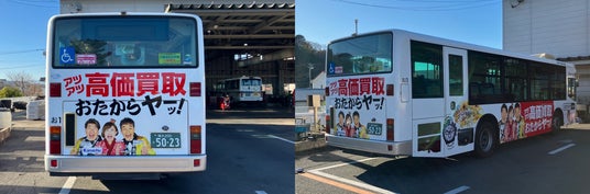通勤・通学、買い物や通院など、日々の生活動線の中で自然と目に入るラッピングバスを通じて、「高価買取 おたからや」という身近な相談先の存在を地域の皆さまに知っていただくことを目的としています。