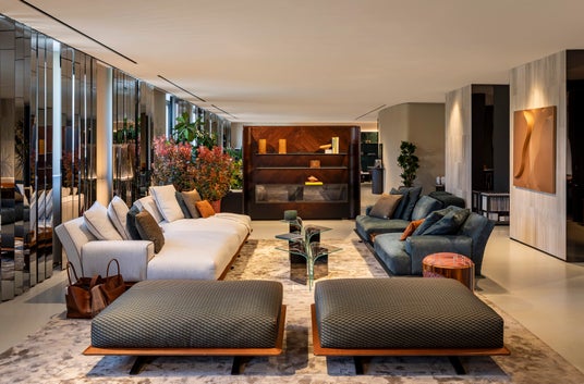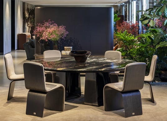 - 家具には、木材・大理石・カシミアなど自然由来の贅沢な素材を使用。マットな質感や異素材の組み合わせが、手触りでも楽しめる豊かな表情を生み出す