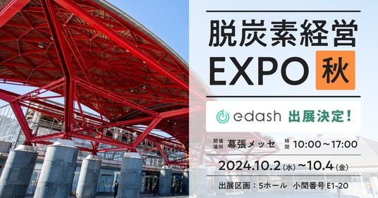 CO2排出量可視化・削減サービスプラットフォーム「e-dash」を提供するe-dash株式会社(本社:東京都港区、代表取締役社長:山崎冬馬、読み:イーダッシュ、以下「当社」)は、2024年10月2日(水)~10月4日(金)の3日間にわたり、幕張メッセで開催される「第5回 脱炭素経営 EXPO【秋】」に出展します。