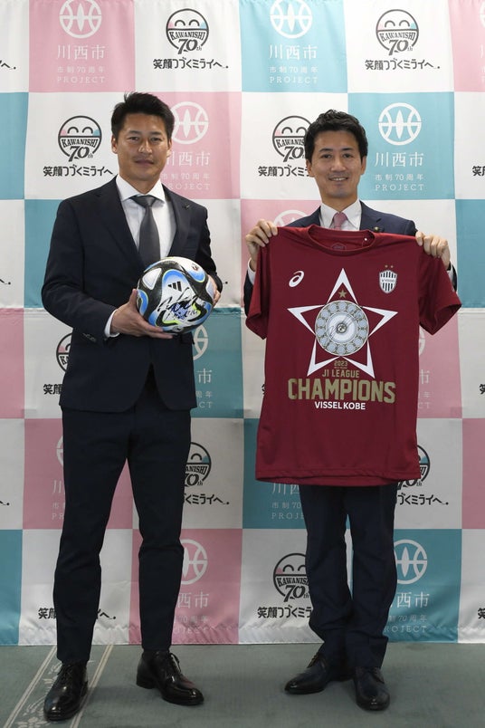 1月15日、川西市役所(中央町12-1)で、川西市出身の元プロサッカー選手で現ヴィッセル神戸監督の吉田孝行(よしだ たかゆき)さんに川西市民栄誉賞を贈呈した。越田市長より吉田さんに表彰状が手渡され、祝辞などが述べられた。