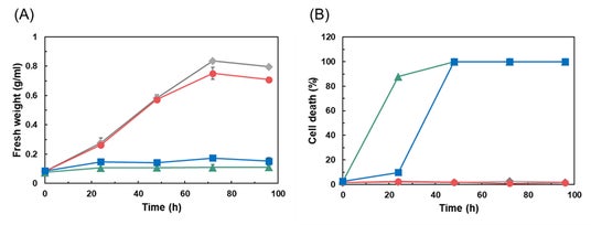 単独培養では得られない化合物を生産できる手法として、異なる二種類以上の細胞や微生物を同時に培養し、それらの相互作用を利用する共培養技術があります。これまで、微生物同士の共培養が広く研究されてきた一方で、微生物と植物培養細胞の共培養の研究は微生物同士の共培養ほど進んでいません。その理由の一つとして、微生物が植物培養細胞の増殖を阻害し、細胞死を引き起こしやすいことがあります。