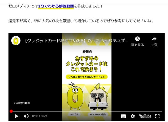 株式会社ゼロアクセル(本社:東京都千代田区、代表取締役:大福裕貴、以下「ゼロアクセル」)は自社運営サイト『ゼロメディア』のクレジットカードカテゴリ記事において「1分解説動画」を設置しました。