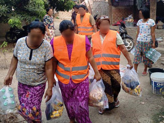 マンダレー近郊の村落で支援物資を運ぶ現地協力団体職員